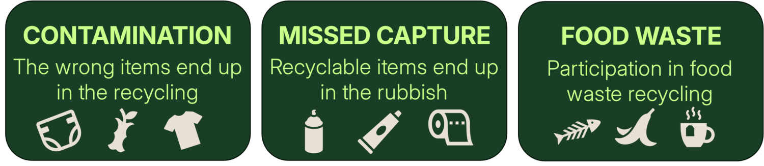- Contamination rates in dry mixed recycling were persistently high, with a small number of commonly misunderstood items responsible for a large share of errors.